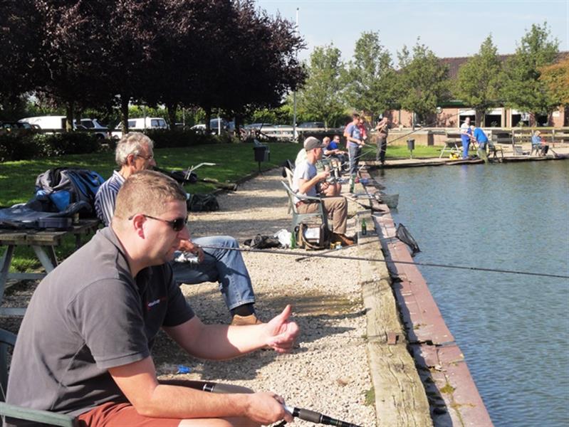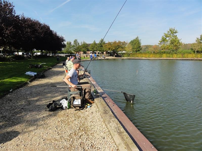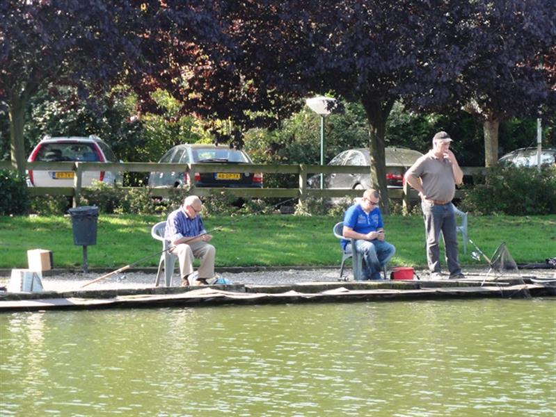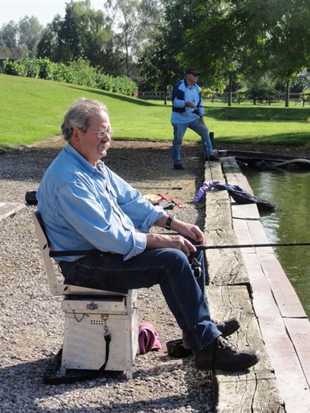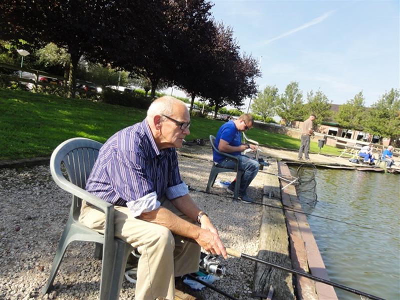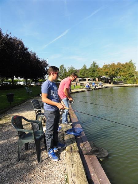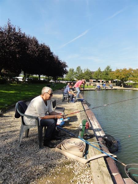 Een veertigtal leden op een zonovergoten middag op forel vangst.