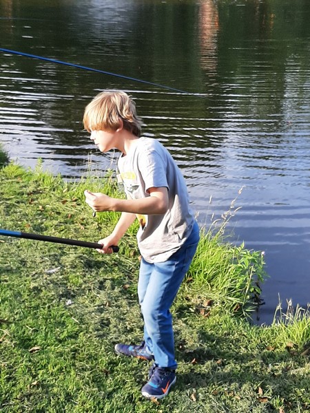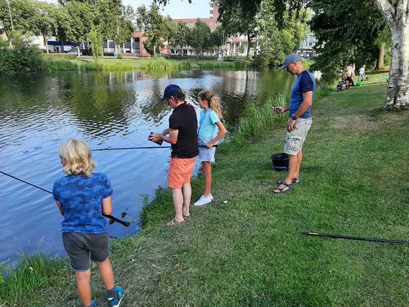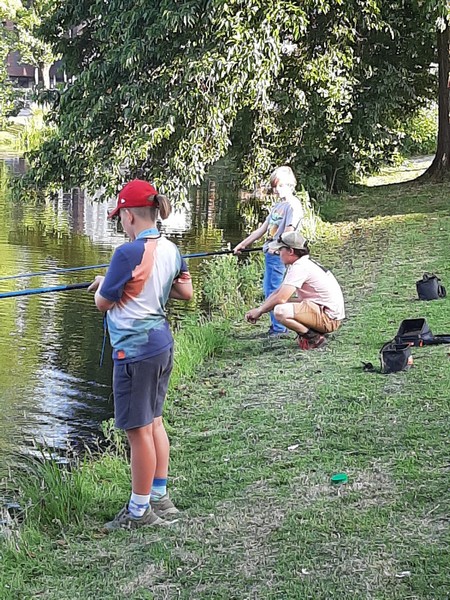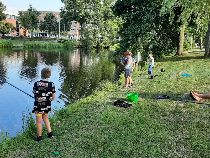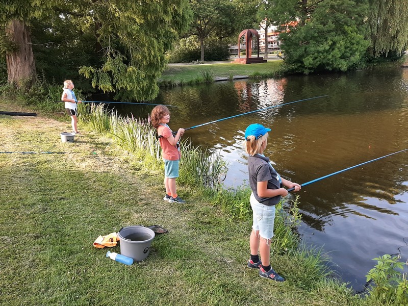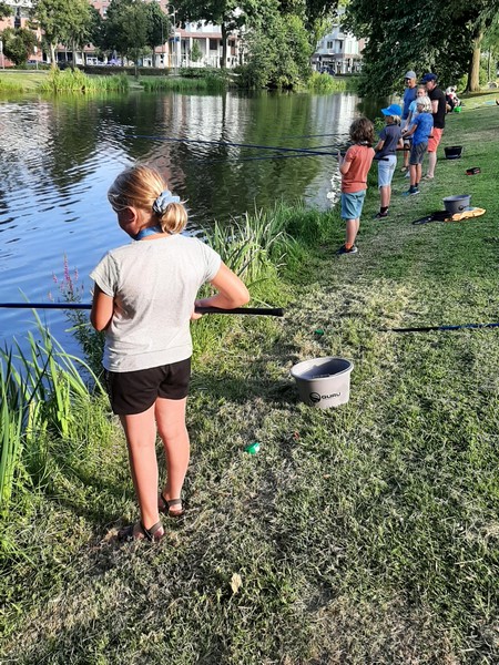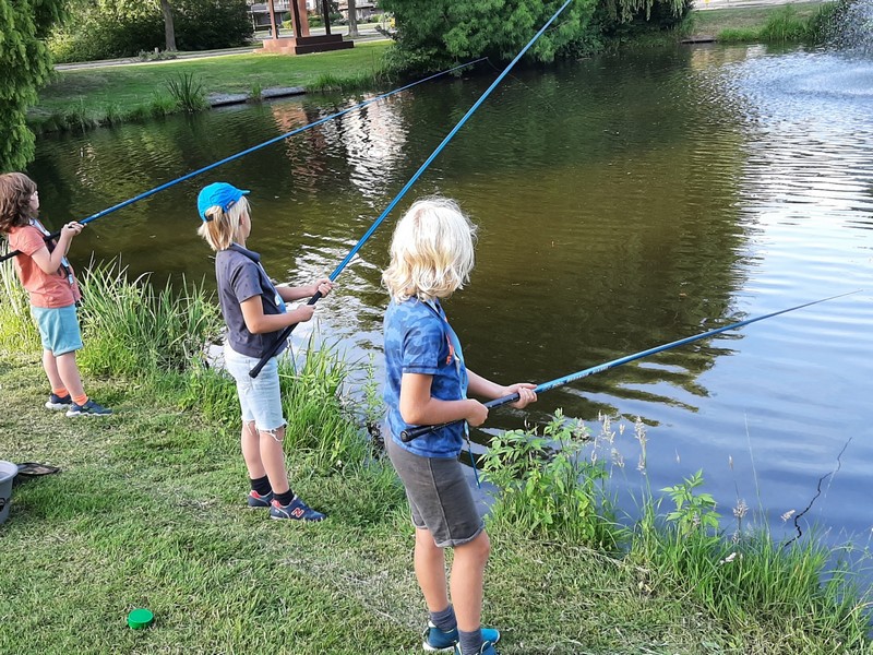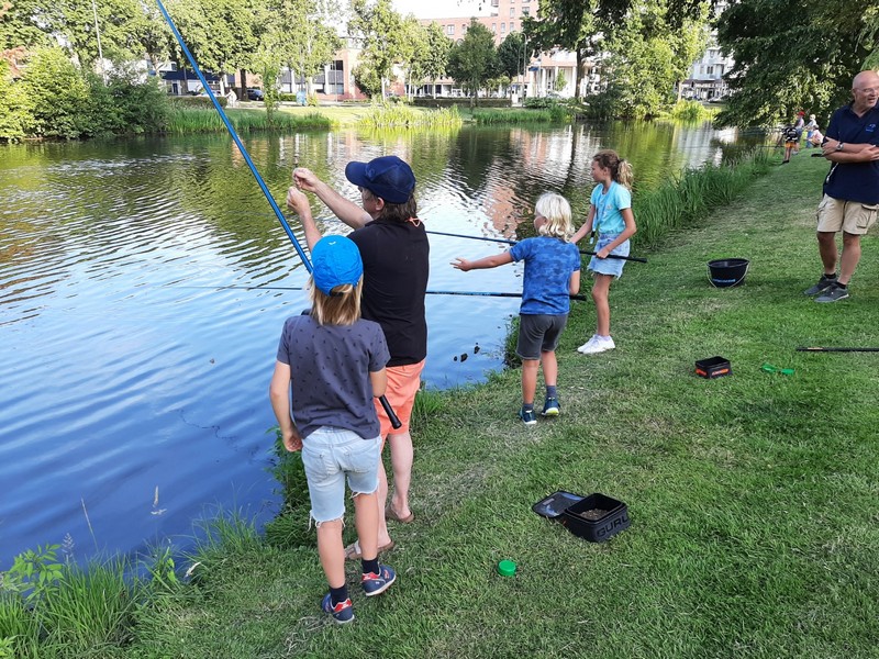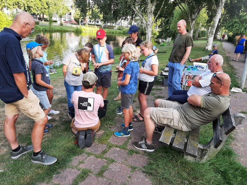 De eerste van de 3 jeugdvislessen aan de Kennedyvijver te Velp